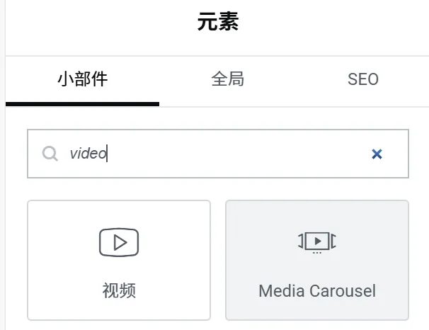 如上图所示,在Elementor的元素中找到VIDEO/视频模块,把它拖到编辑页面中。