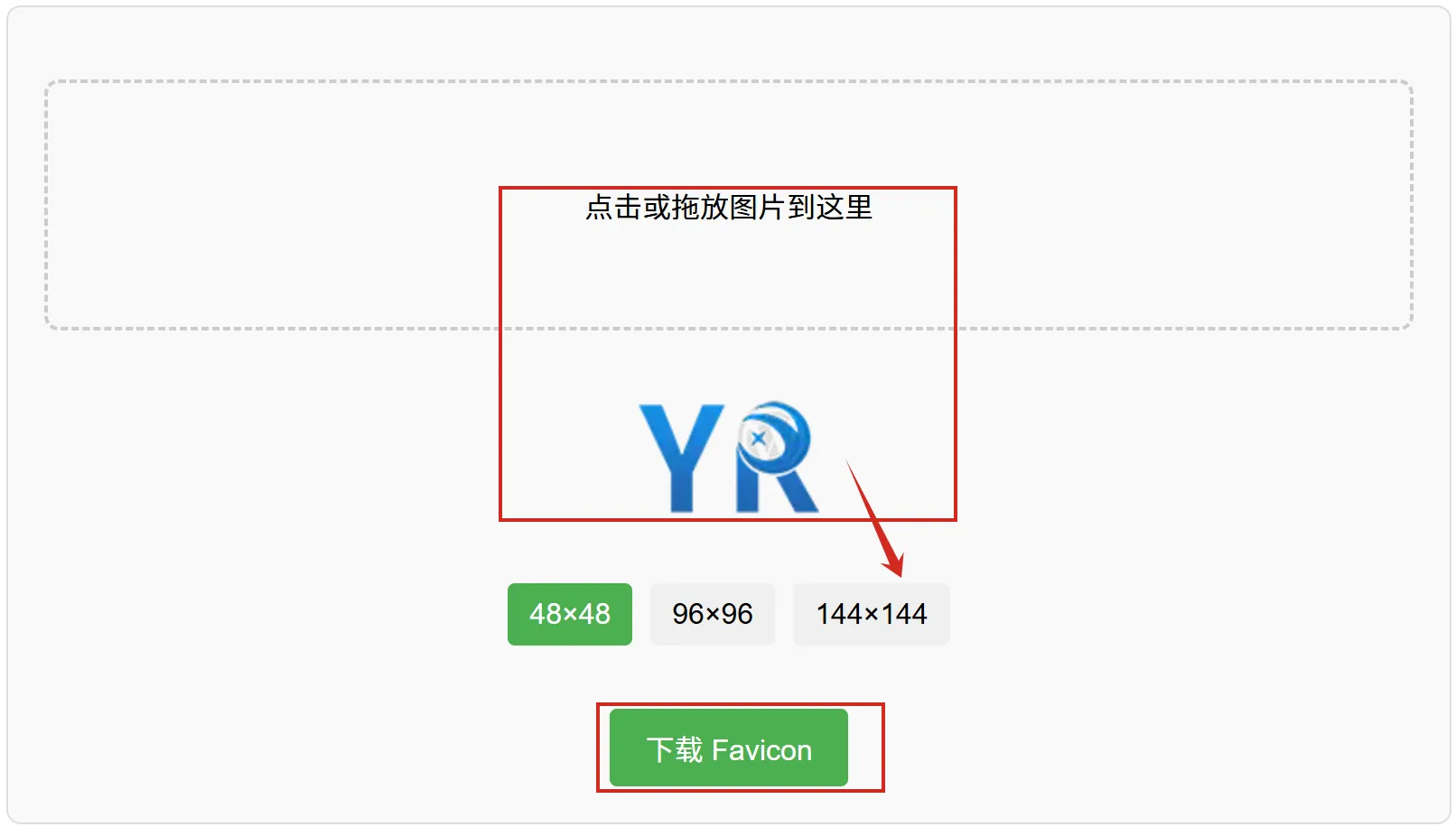 这里就以我自己做的图片转Favicon工具来演示吧,打开上面的网址,点击或把图片拖到窗口中,选择需要的尺寸,3个都可以,然后点【下载Favicon】按扭即可。